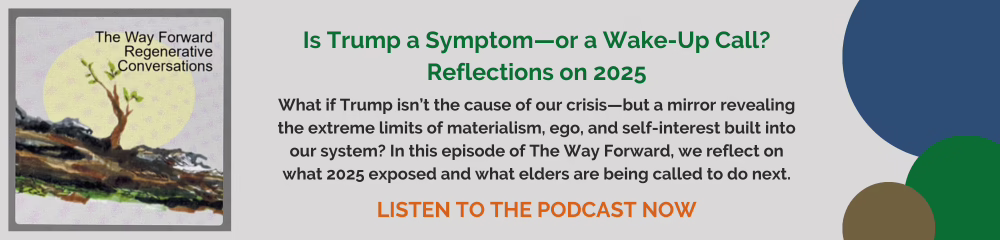 In our workshops and conversations we explore the critical issues that keep us awake at night – climate change, our floundering democracy, social injustices, and the need for a new, regenerative way of living. Then we move into action, putting to good use our talents, time, resources, and decades of life experience.