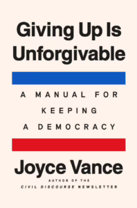 Join us on October 29 for another session of our Democracy Speaker series: A Manual for Keeping Democracy Alive, featuring Joyce Vance, just one week after the release of her first book, Giving Up Is Unforgivable: A Manual for Keeping a Democracy.