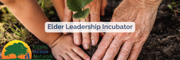 To participate you’ll first need to register for this Elder Leadership Incubator Orientation, a Zoom session on April 1 at 12:00 pm PT / 3:00 pm ET. If you decide to participate in the Elder Leadership Incubator, the suggested donation to Elders Action Network is $50.